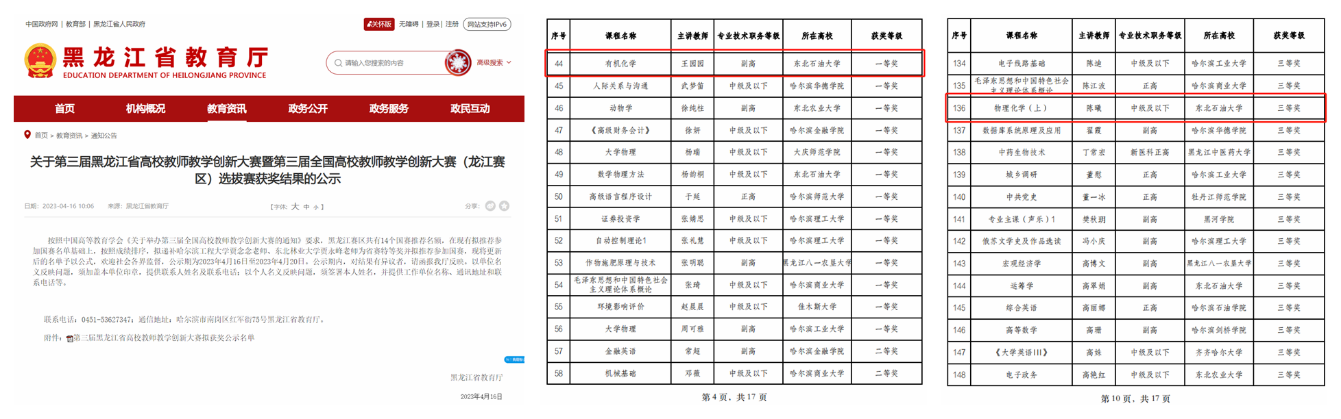 王园园、陈曦在第三届黑龙江省高校教师教学创新大赛中荣获佳绩