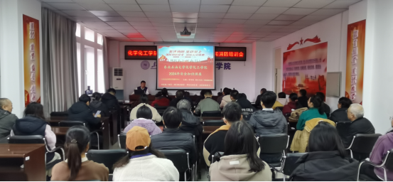 为进一步做好实验室安全管理和安全教育工作,增强学院师生实验室安全防护意识,我院于2024年3月20日下午3点30分在化工馆开展实验室安全应急疏散演练、消防知识技能培训活动。学院领导、实验室负责人、教师和新生代表共计60余人参加本次演练和培训。活动主要分为三个环节:消防安全教育培训,火灾应急疏散演练,燃烧扑灭演练。